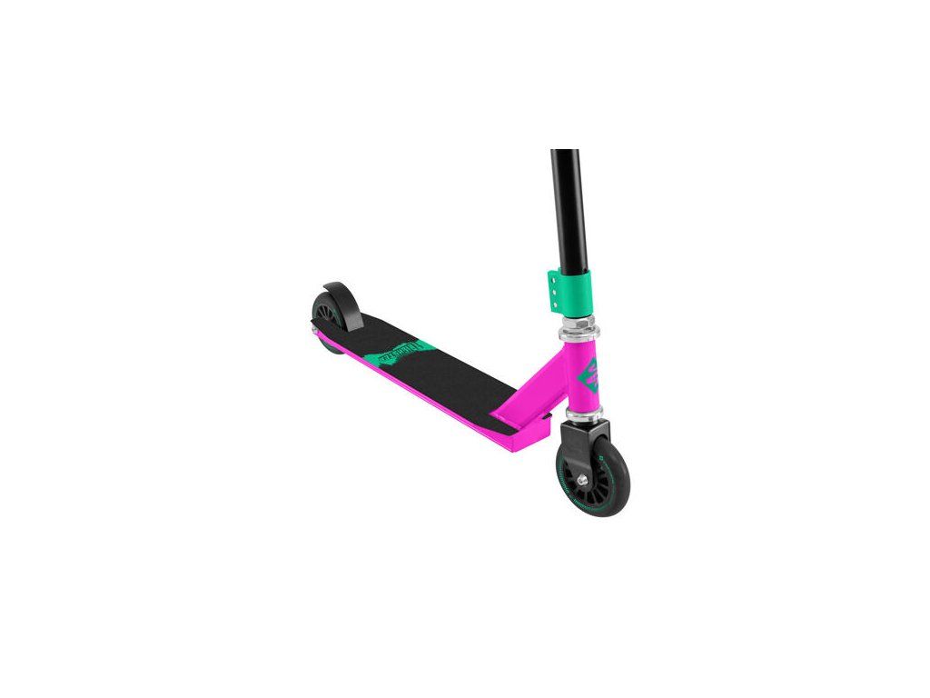 Atraktívna a cenovo dostupná freestyle kolobežka Street Surfing Trickster je vytvorená pre začiatočníkov, ktorí si tak môžu vyskúšať svoje prvé skoky a triky. Konštrukcia vyniká zváranými riadidlami BMX, oceľovou vidlicou, vystuženou zváranou hliníkovou platňou a trojbodovou objímkou. Vlastnosti kolobežky Trickster: vystužená hliníková doska 34 x 10 cm, grip tape s grafikou na nášľape, oceľové riadítka široká 47,5 cm; výška riadidiel 79 cm, kolieska 100 mm, 80A, PU; ložiská ABEC 5; výkonná brzda na zadnom koliesku; odolné gumové gripy; hmotnosť 2,6 kg; odporúčaný vek 5+; max. nosnosť 100 kg. : : : :Dodatočné parametre