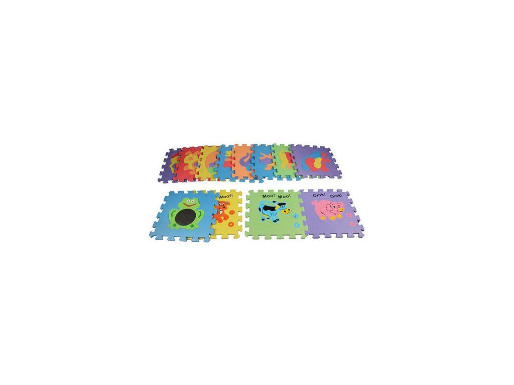 Merco Zvieratká sú rôznofarebné puzzle s vrúbkovaným povrchom, vyrobené z lisovanej EVA peny, teda materiálu, ktorý je veľmi ľahký, mäkký, príjemný na dotyk, má skvelé izolačné vlastnosti, tlmí hluk, nenasiaka, ľahko sa udržuje a je zdravotne nezávadný. Pre tieto vlastnosti sa penové puzzle výborne hodia k vytvoreniu hracej plochy všade tam, kde sú deti a kde je podlaha príliš chladná. Sada sa skladá z 12 kusov s motívmi zvierat. Jeden štvorec má rozmer 32 x 32 cm a hrúbku 1 cm, súčasťou sú aj hrany pre zarovnanie plochy. Po zložení je celková plocha dosky približne 126 x 96 cm. Tieto puzzle ponúkajú naviac tri zvukové efekty (Napájanie batériami 6x LR41). Celé balenie je dodávané v praktickom PVC obale pre jednoduchšie uskladnenie. Ideálne pre rozvoj motoriky, poznávanie tvarov a zvierat. Upozornenie: Batérie LR41 nie sú súčasťou balenia. : : : :Dodatočné parametre